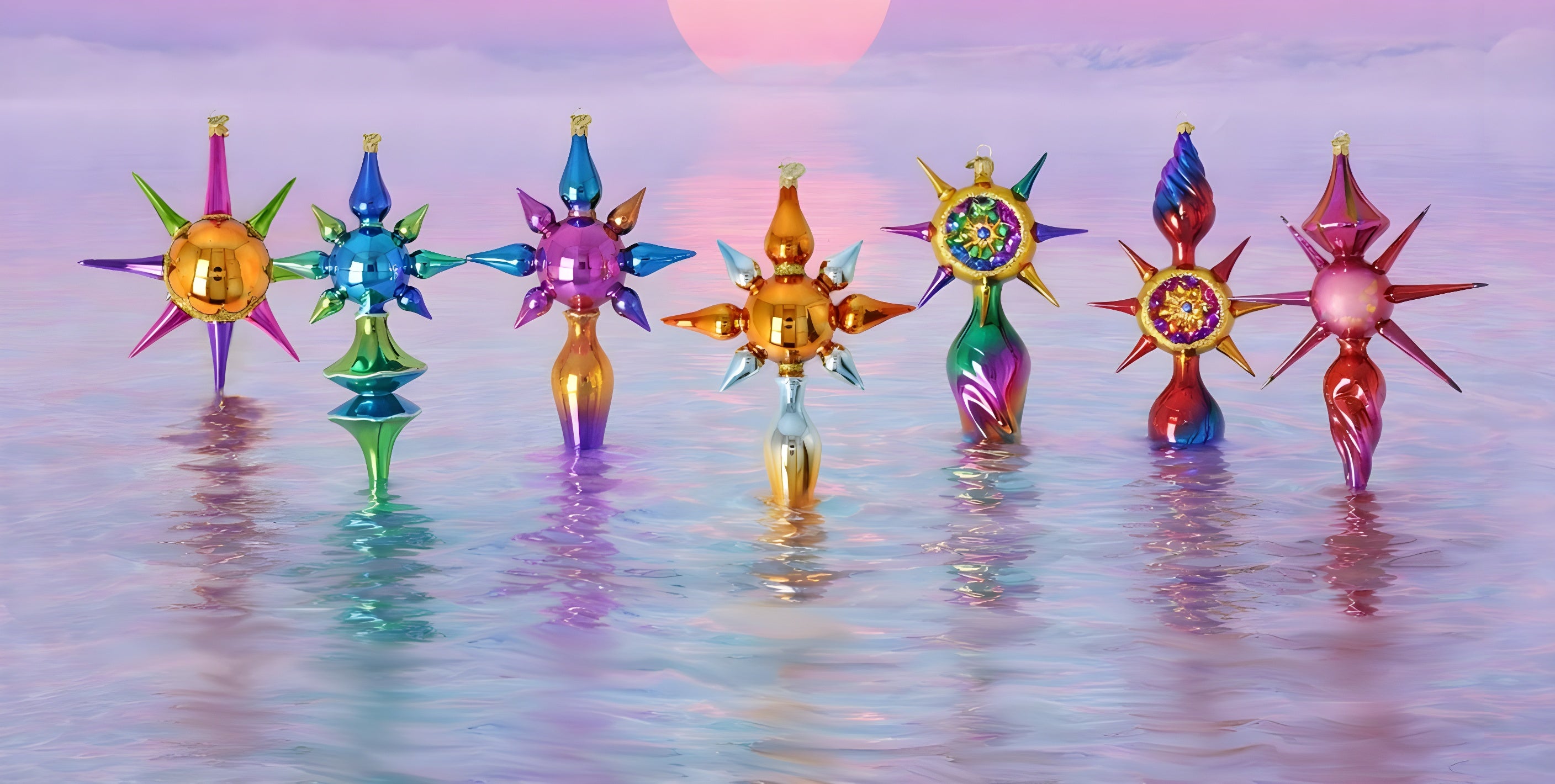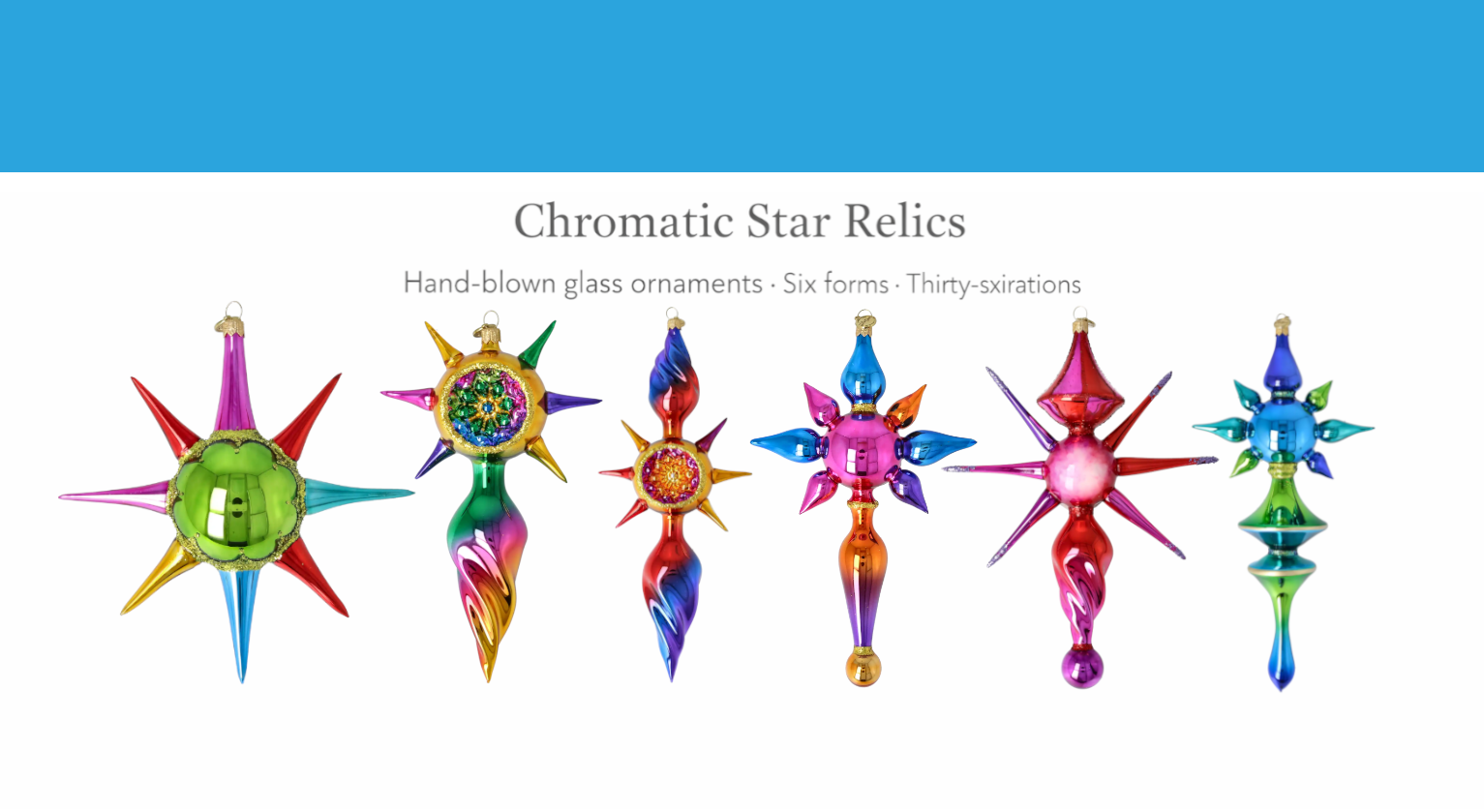 Chromatic Star Relics, Hand-Blown Glass Ornaments - Six Forms - Six Colors