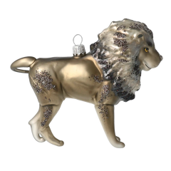 Celebrate the king of the jungle with this stunning Golden Mane Lion Glass Ornament. Hand-painted in warm amber and gold tones with shimmering glitter accents, this majestic lion brings a bold, royal touch to your Christmas tree. Perfect for creating an exotic, luxurious holiday display that stands out with natural elegance.