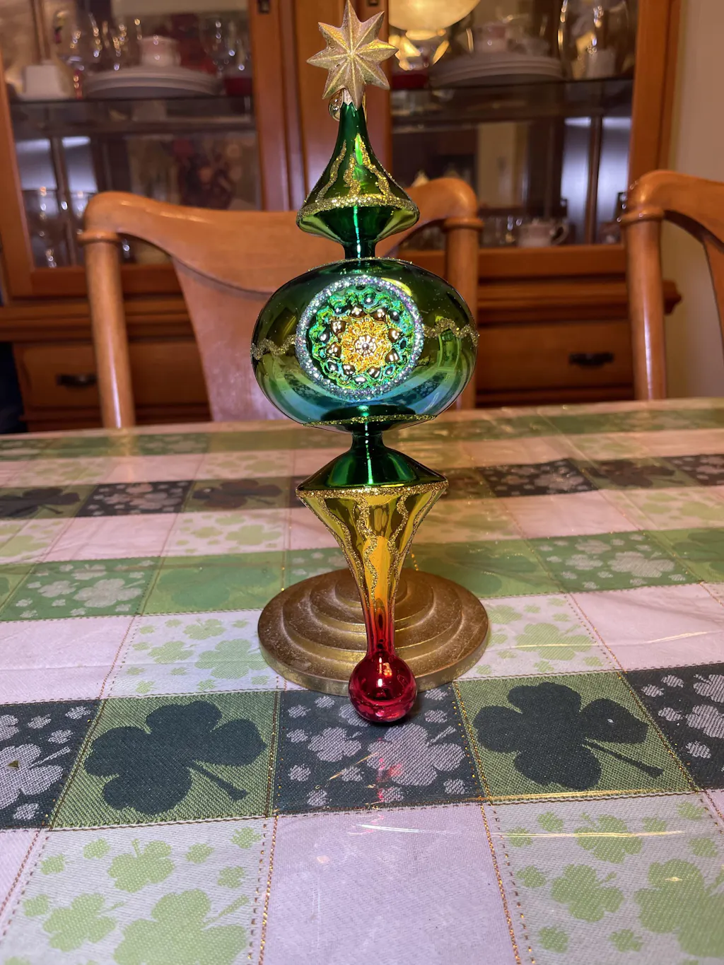 Emerald Core features a deep green glossy body with a luminous emerald-toned center, enriched by delicate gold accents and a warm gradient finish. A refined glass ornament with a classic silhouette and an elegant, jewel-like glow.