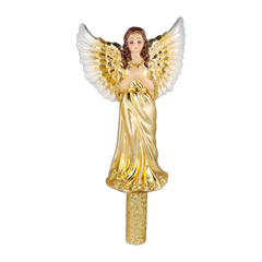 A tree topper in the form of an angel with gently spread wings and a serene expression. Finished in elegant white and gold, it adds sparkle and timeless charm to any Christmas tree. A perfect symbol of peace and protection for your festive decor.