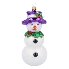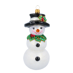 With his glistening snow-white body, joyful smile, and classic black top hat adorned with festive holly, Jolly Frosty brings timeless holiday cheer to your tree. Finished with shimmering glitter, this cheerful snowman captures the magic of a traditional white Christmas in the most charming way.