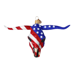 Patriotic design: this ornament is inspired by the spirit of America, with the United States flag proudly adorning a buffalo skull. The combination of red, white and blue, as well as the distinctive stars and stripes, give this ornament a unique, patriotic feel that fits perfectly with the American aesthetic.