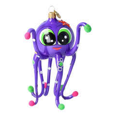 Dive into the depths of whimsy with Ocean Diva – a dazzling purple octopus ornament with sparkling tentacle tips and big, dreamy eyes. Adorned with polka dots and seashell accents, she brings a splash of playful charm and underwater elegance to any holiday décor.