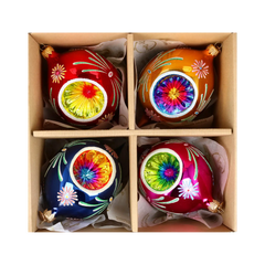 Die Verzierung Ruby Glow strahlt in tiefen rubinroten Tönen und kunstvollen Blumenmustern und verleiht Ihrer festlichen Dekoration einen Hauch von zeitloser Eleganz. Ihr atemberaubendes, spiegelndes Zentrum in Grün, Blau und Gold hebt das Leuchten der Weihnachtslichter wunderschön hervor. Mit außergewöhnlicher Liebe zum Detail handgefertigt, ist dieses zeitlose Stück ideal für Liebhaber klassischer, kunstvoller Weihnachtsdekorationen. Bitte beachten Sie auch, dass die Farben je nach Foto und Bildschirmeinstellungen leicht variieren können.