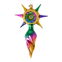 Una delicada estrella de vidrio rosa con un centro resplandeciente y ornamentado. Suave pero expresiva, aporta elegancia y calidez a las exhibiciones navideñas seleccionadas.