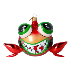 Adorno navideño de vidrio con forma de rana alegre, acabado en un color rojo vibrante. Ojos grandes, una sonrisa amplia y detalles brillantes le confieren un aire festivo y juguetón. Perfecto como decoración humorística para el árbol de Navidad o como adorno coleccionable único.